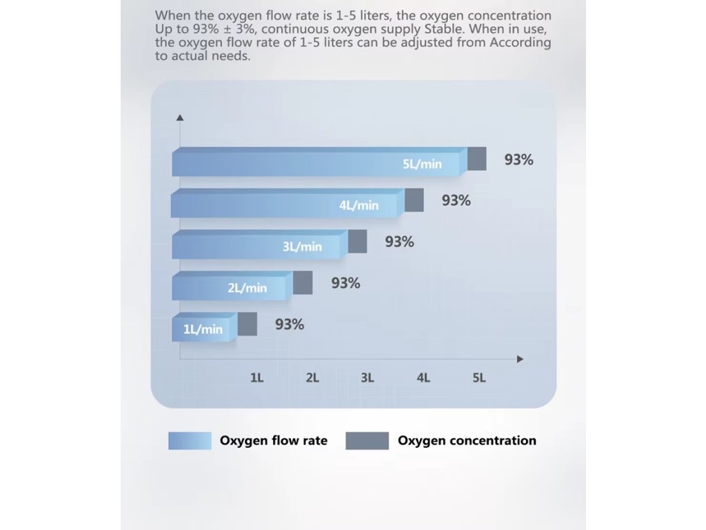 Concentrație continuă de oxigen de până la 93% pe toate nivelurile