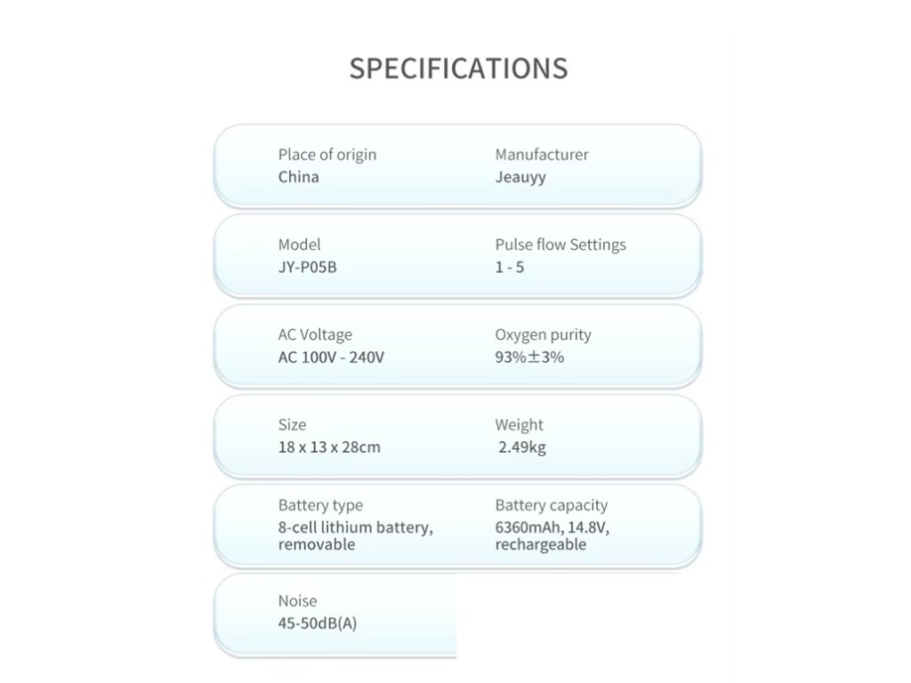 Titan, Jeauyy concentrator de oxigen alimentat cu baterie, 5 ore autonomie, alb - 93%, 1-5L, cu ghiozdan